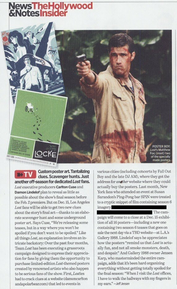 Paul Scheer, the face of Damon, Carlton and a Polar Bear and Ronie Midfew Arts, invites LOST fans to attend the LOST Underground Art Project at Gallery 1988, Los Angeles, CA on December 15, 2009 from 7 -10 p.m. All 16 prints revealed in the damoncarltonandapolarbear.com ARG will be on display. In addition to these original screen prints, an additional twenty-five commissioned LOST inspired artworks will be available for viewing. Follow LIVE as it happens from USTREAM hosted by yours truly, Lottery Ticket.