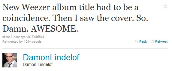 “We struggled super hard trying to come up with an album title, trying to find some kind of phrase that summed up the whole aesthetic behind the album: ‘Heavy Mental,’ ‘Smaller Than Life,’” Cuomo says. “I was coming up with all kinds of stuff, but ultimately, we just went with some random word that doesn’t really have anything to do with anything. I just loved this photo of Jorge Garcia — it just had this amazing vibe. We didn’t want to do a fourth self-titled record and we knew people would refer to it as ‘the Hurley record’ even if left it without that title, so we just called it ‘Hurley.’ No words are on the cover because all we wanted was his amazing face.”